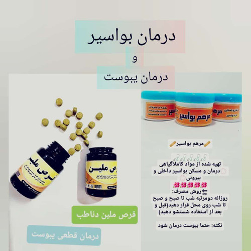 ⚜️پک همورویید( رفع بواسیر داخلی و خارجی ) دناطب ⚜️ 🌱درمان بواسیر 🌱درمان شقاق 🌱درمان هموروئید 🌱بهبود التهابات و تورم 🌱کاهش درد 🌱رفع خونریزی 🌱بهبود زخم 🌱درمان سوزش و خارش ✅این محصول را باید با قرص ملین مصرف کنید ✅دوره درمان دو الی سه دوره 👌🏻کاملا گیاهی و با درمان هر نوع بواسیر ✅در صورتی که دفع شما بصورت یبوست یا معمولی میباشد در کنار پماد بواسیر حتما از قرص ملین استفاده کنید و در صورتی که یبوست شدید بود یا طی یک هفته استفاده از قرص ملین برطرف نشد روزی دو بار از قرص استفاده کنید. ♻️کاملا گیاهی و ارگانیک