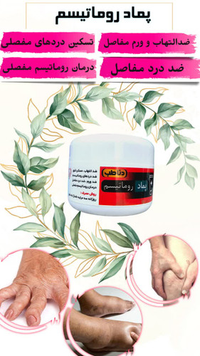 〽️پماد روماتیسم〽️ محصول بی نظیر دناطب✅ با اثر گذاری فوری💯 مفید برای👇🏻👇🏻👇🏻 💢تسکین درد مفاصل 💢تسکین دردهای روماتیسمی 💢ضد ورم 💢ضد التهاب 💢درمان روماتیسم مفصلی روش مصرف👇🏻👇🏻👇🏻 روزانه در دو نوبت ظهر و شب به محل بمالید ☝️نکته در طول دوره دزمان از بلغم زدا دناطب استفاده کنید