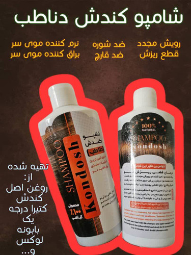 شامپوی قدرتمند کندش 🌺محصول دناطب🌺 ☝️پوست و مو مثل معده هرچی بهش برسه جذب میکنه 👌پس سعی کن بهترین تغذیه رو برای موی سرت درنظر بگیری 😍قویییترین شامپو گیاهی بدون موادشیمیایی ✔️✔️کیفیت بی نظیر این شامپو رو در هفته اول استفاده متوجه میشین👌👌 ♦️تقویت پیاز مو درشیردهی بارداری ویااسترس شغلی و..... 🔷رفع شپش وتخمآن ♦️رفع خارش سر 🔷رفع شوره ♦️رفع ریزش سکه ای 🔷رویش موی ریخته شده ♦️تقویت و پرپشتی مووریش وابرو 🔷رفع سفیدی مو باتداووم اثر ✔️✔️درمان ریزش های معمولی ویا مزمن بطور قطعی وتضمینی ✔️✔️کاملا گیاهی و ارگانیک (دست ساز) بدون مقایسه باهرشامپو وداروی که تاحالامصرف کرده ونتیجه نگرفتید این شامپو با اثر فوق قوی در رفع مشکلات موهایتان تضمین باجوابدهی صددرصد 🚫 قابل توجه با نوان 🚫 مراقب باشین کف حاصله زیاد به نواحی دیگردربدن نرسد زیرا کف حاصله از این شامپو در طولانی مدت باعث رشد مو در نواحیه دیگر می شود گیاهان درون این شامپو کاملا قابل رویت میباشد😍 یک شامپوی فوقالعاده عالی برای بانوان و آقایان