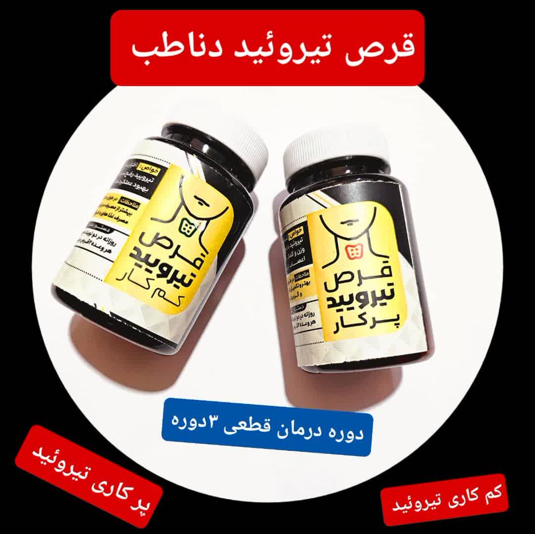 ♦️♦️قرص تیروئید دناطب♦️♦️ کسانی که درگیر تیروئید کم کار یا پرکارن میدونن هیچ درمانی در طب نوین برای درمان این بیماری وجود نداره و تا اخر عمر باید قرص مصرف کنن ولی دناطب که بارها ثابت کرد سررشته فوق العاده ای برای درمان تمام بیماریا داره این بار هم دست به کار شد 1️⃣خواص قرص تیروئید کم کار: 🟦افزایش ترشح هورمون تیروئید 🟦رفع سردی بدن 🟦جلوگیری از چاقی و کاهش وزن 🟦بهبود عملکرد معده 🟦هضم بهتر غذا 🟦رفع مشکلات ناشی از بلغم( خلط گلو، سفیدی مو، فراموشی و.....) 2️⃣خواص قرص تیروئید پرکار: 🟨کاهش و تنظیم ترشح هورمون تیروئید 🟨دفع حرارت کاذب بدن 🟨تعدیل وزن و کمک به تناسب اندام 🟨تقویت اعصاب 🟨درمان مشکلات ناشی از غلبه صفرا( ریزش مو، بی خوابی، خارش بدن، رفع زردی و.....) 🔚 روش مصرف: بعد از صبحانه ۲عدد و بعد از شام ۲عدد همراه اب ولرم میل شود پرهیزات نوشته شده روی قوطی رعایت گردد