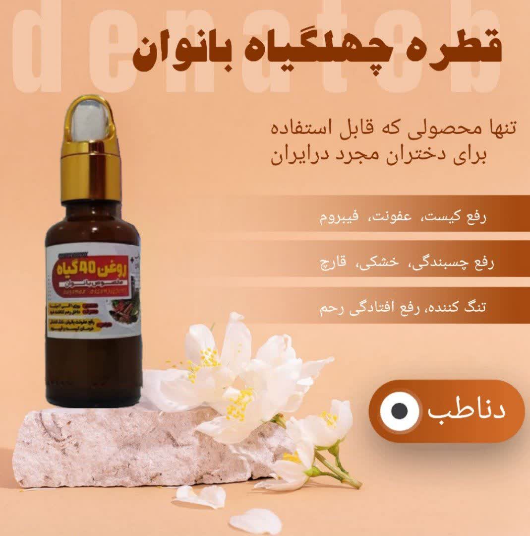 این محصول برای اونایی که دنبال شیاف جذبی هستن استفاده راحت جوابدهی تضمینی قیمت مناسب روغن چهلگیاه دناطب هیچگونه عوارض جانبی ندارد 🌱تنگ کننده بسیار قوی واژن کاملآ طبیعیی 🌱ضد عفونت های رحمی و انتی باکتریال 🌱رفع کننده بوی بد و ترشحات ناشی از عفونت 🌱درمان زخم های واژینال ورفع التهاب 🌱افزایش لذت جنسی 🌱کمک به درمان بیماریهای زنانه 🌱افزایش میل جنسی در خانمها مصرف راحت 🌱ضدالتهاب و خارش اثربخشی سریع 🌱تنظیم میزان اسیدی و بازی ترشحات واژینال معلومات بیشتر 👇 روغن چهل گیاه صد در صد طبیعی است و هیچ گونه ماده شیمیایی در آن بکار برده نشده است. بنابر این هیچ گونه عوارض جانبی ندارد. 🌹🌹روش مصرف هرشب مقداری از روغن را در به اندازه ۴سانت در رحم بچکانید🌹🌹 ❌این روغن برای دختران مجرد هم قابل مصرف هست 😍
