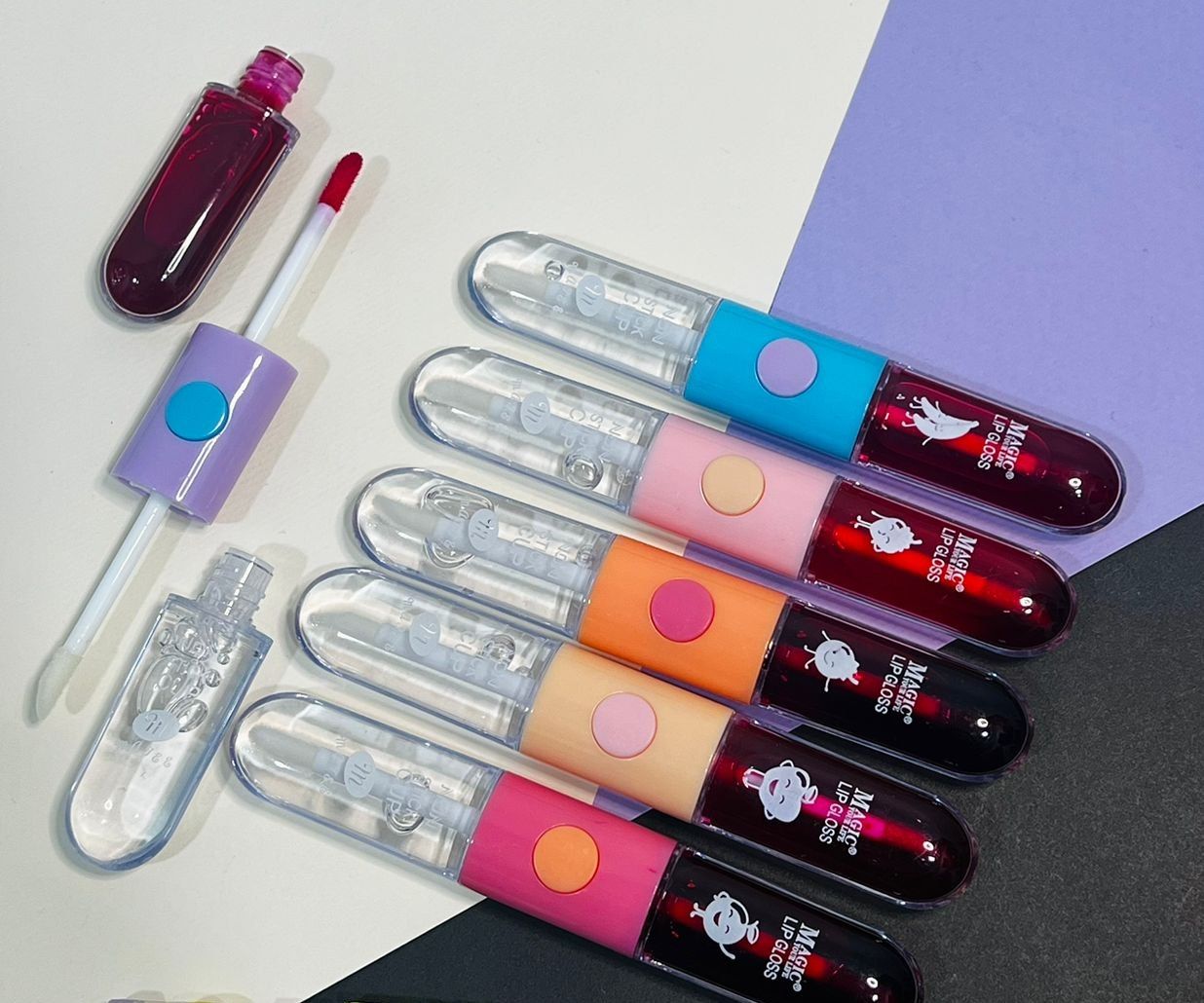 شاین لب تیوپی همرا با آویز برق لب حرارتی(فروش عمده جین۲۴عددی)