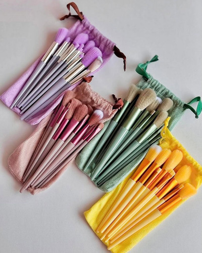 براش 13 تکه همراه با کیف مخصوص 💝 کاملا کاملا حرفه ای پرتراکم و نرم بدون ریزش و قابل شستشو فوقالعاده خوش دست و ظریف دارای ۳رنگ و کارتن دار زرد سبز فیلی