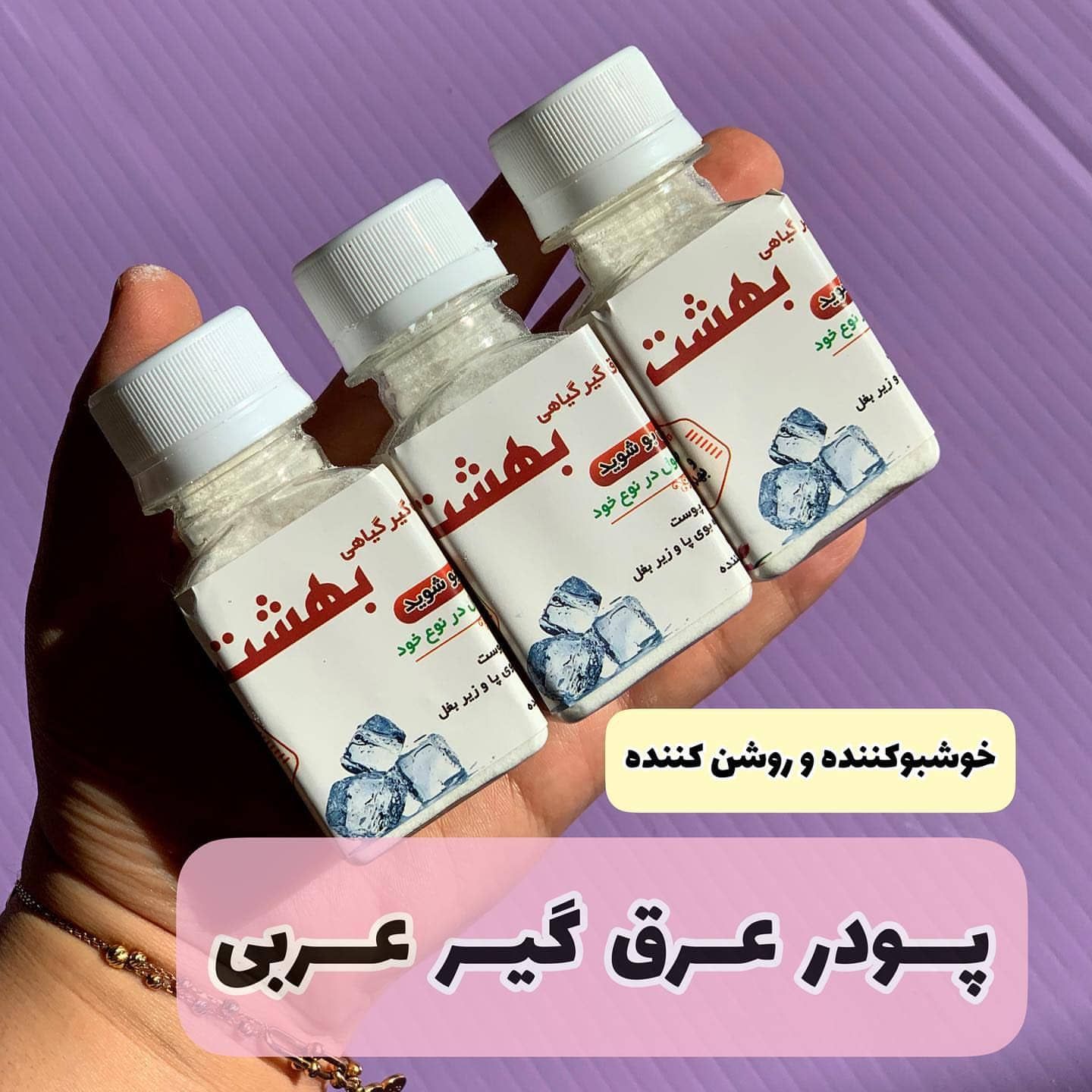 پودر گیاهی بوگیر بدن بهشت قابل استفاده برای تمام سنین رفع بوی بد و نامطبوع عرق به صورت کامل رفع بوی بد کفش روش مصرف مقدار کمی از پودر را بعد از حمام به زیر بغ/ل مرطوب بزنید .